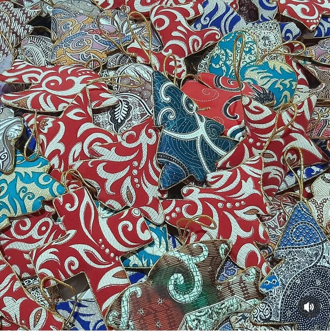 Hiasan untuk pohon natal dengan isi 1 set 6 bh, tersedia dengan beberapa kombinasi warna batik