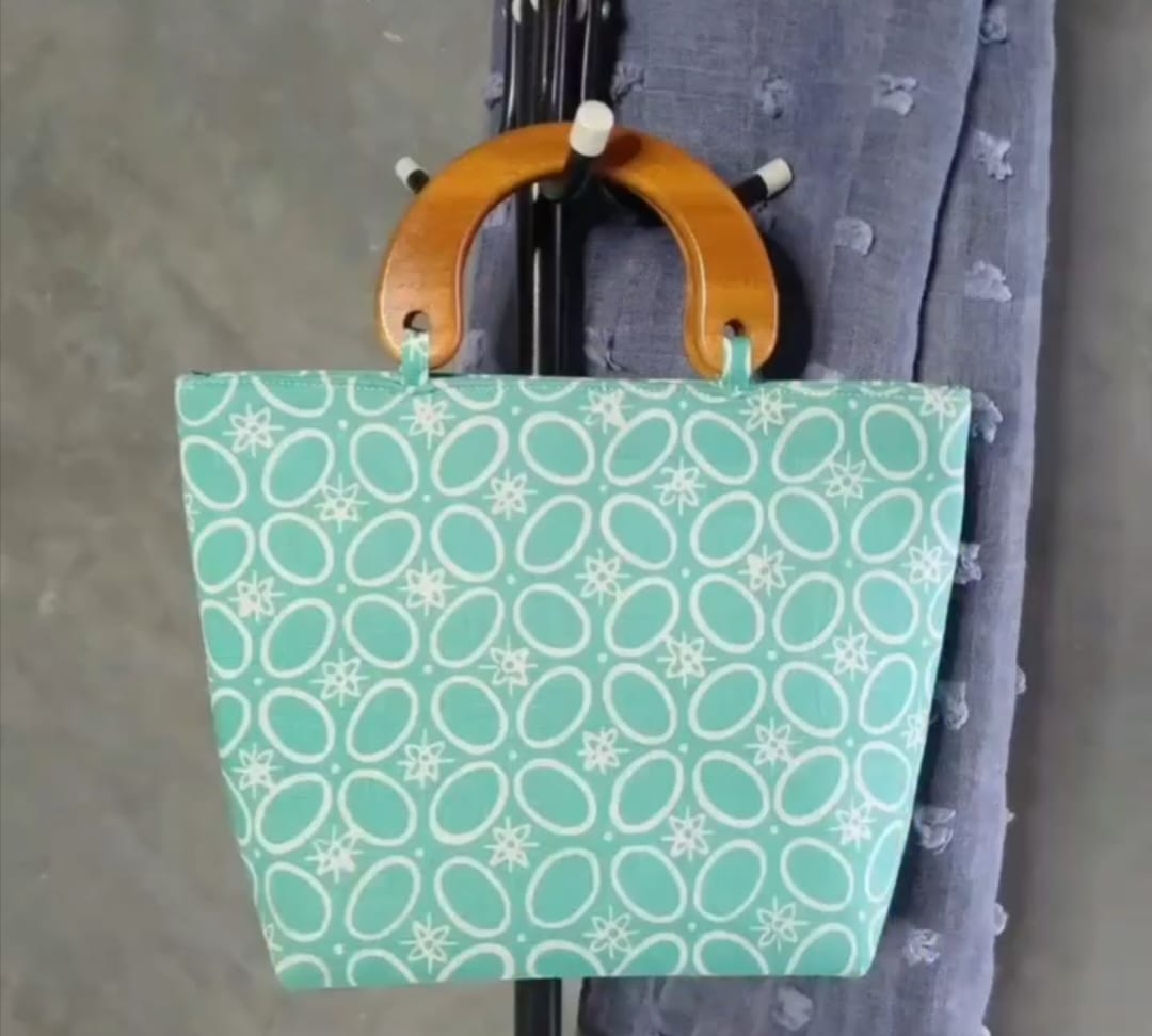 Tas tangan Jinjing terbuat dari batik, dengan jinjing terbuat dari kayu