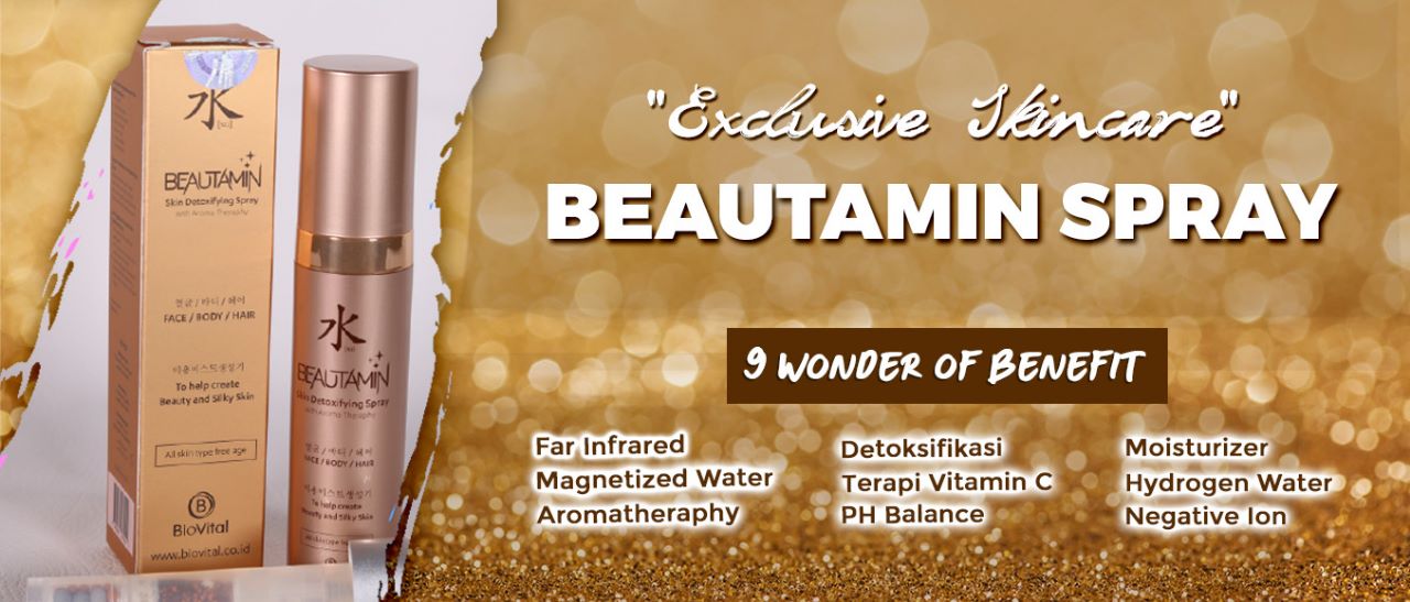 Semprotkan Beautamin Spray untuk perlindungan dan perawatan kulit wajah :